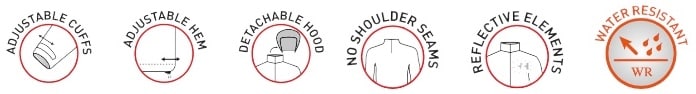 • Adjustable hood with drawcord and fastener