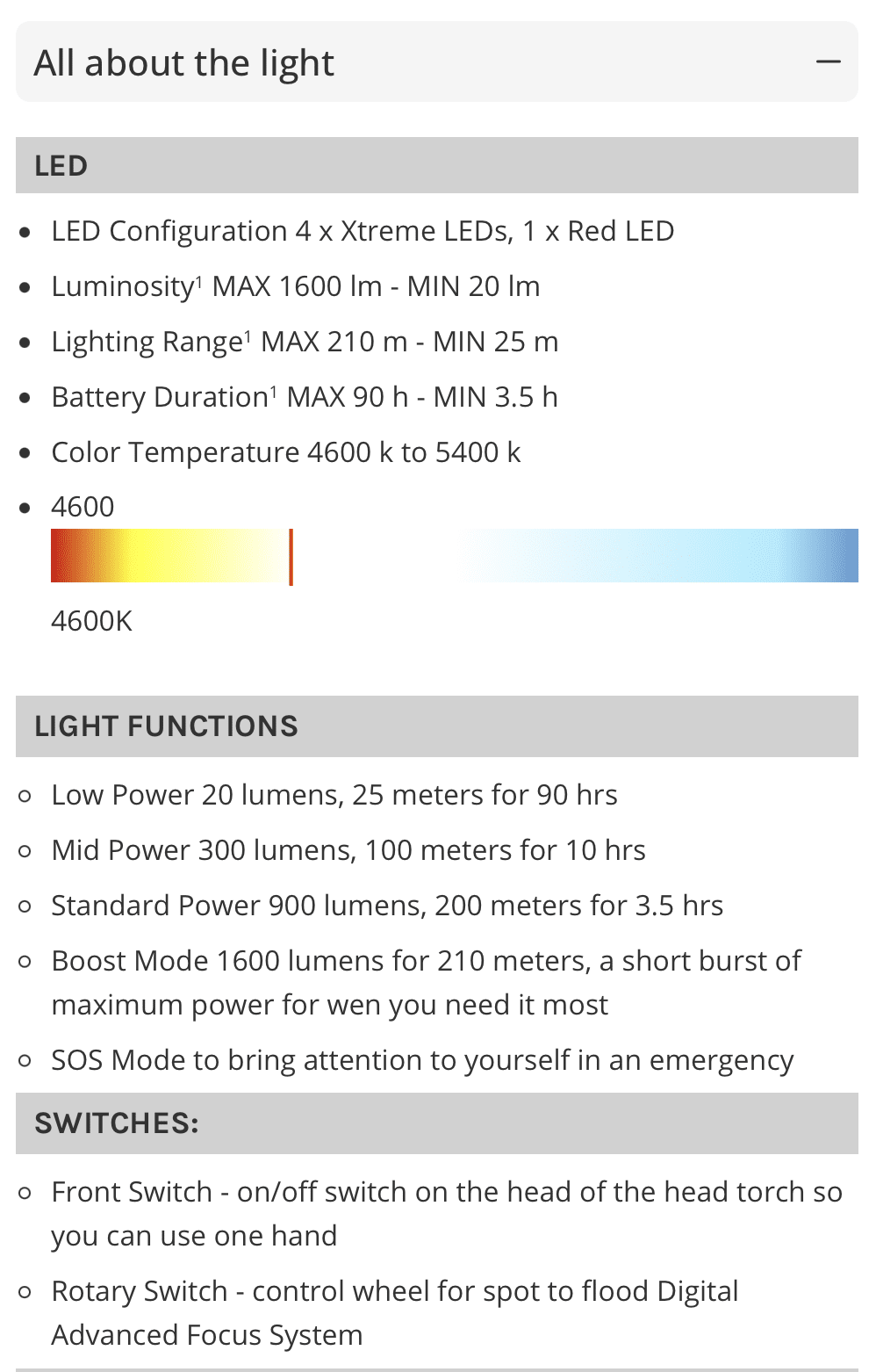 - Boost Mode 1600 lumens for 210 meters, a short burst of maximum power for wen you need it most