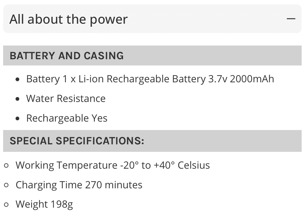 - Time to full charge – 270 minutes