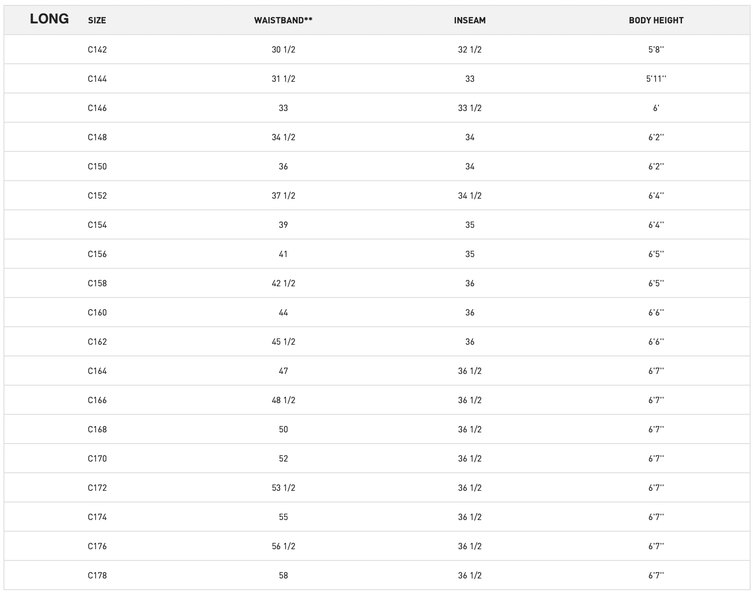 • REGULAR – C42(W30.5) – C68 (W50)
