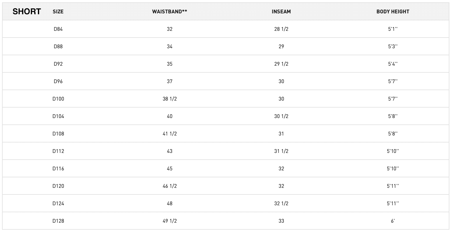 • SHORT – D88(W34) D124 (W48)