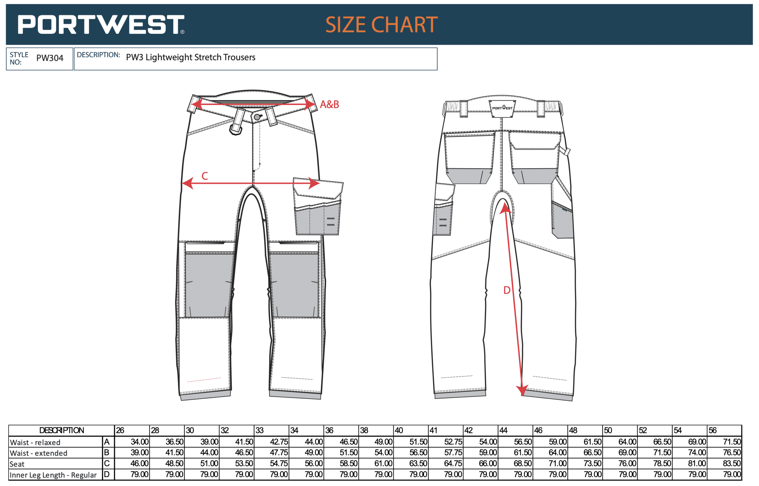 PORTWEST PW3 Lightweight Stretch Trousers(PW304)