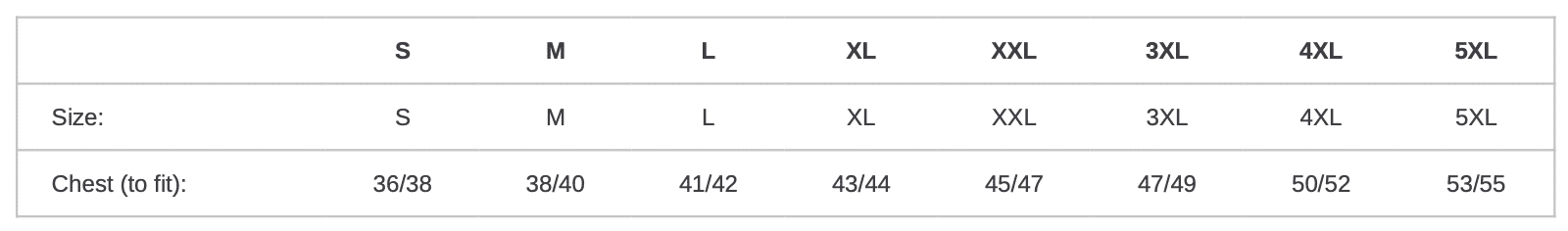 S M L XL 2XL 3XL 4XL 5XL