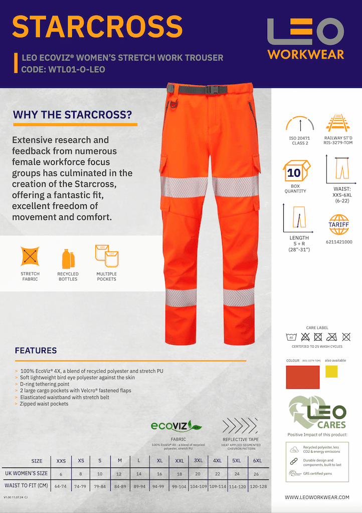 LEO STARCROSS EcoViz Womens Stretch Work Trouser (WTL01)
